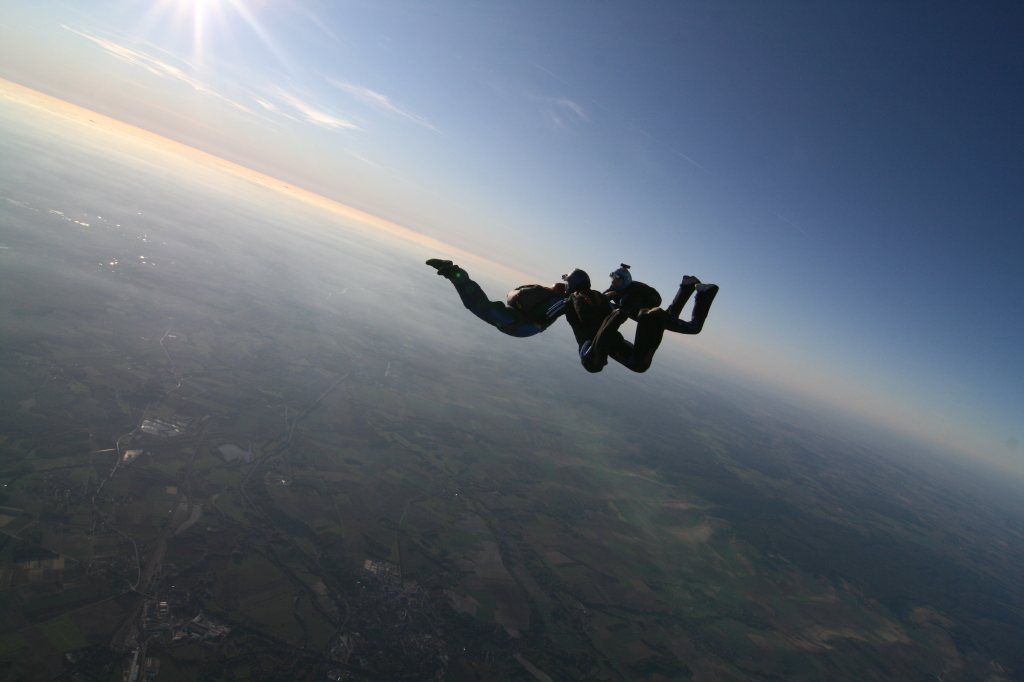 L’élève sera équipé de son propre parachute, combinaison, casque, altimètre, lunettes, casque et radio, accompagné de ses 2 moniteurs.